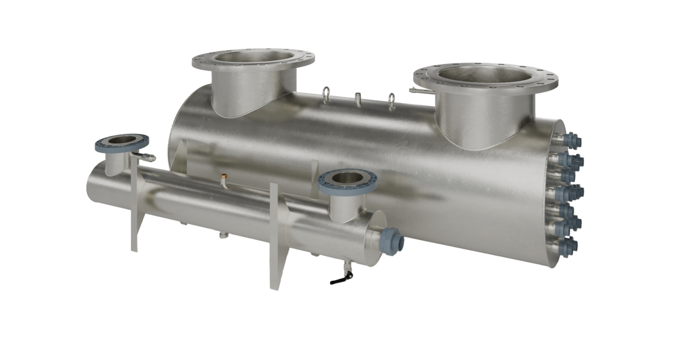Multi-lamp UV sterilizers consist of a housing containing several parallel UV lamps enclosed in protective quartz sleeves. Wastewater flows around the lamps, receiving UV exposure. The design must ensure even flow distribution and minimize shadow zones.